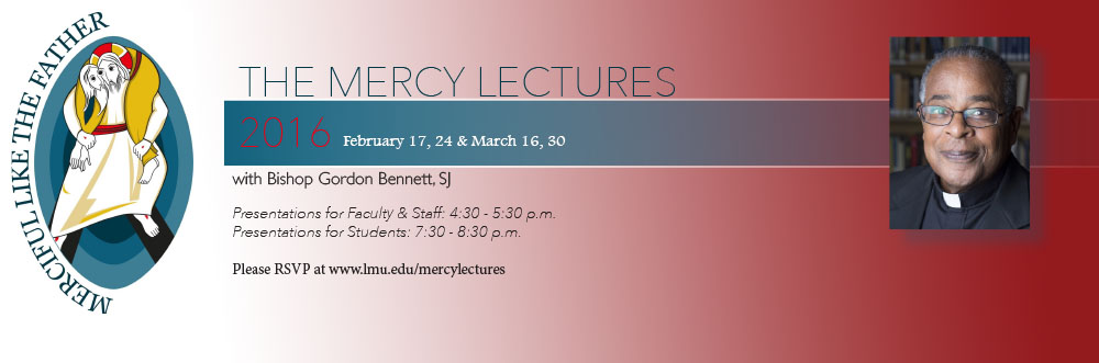 In a previous post, we wondered whether LMU would do anything to recognize the Year of Mercy proclaimed by Pope Francis. We are happy to report that they have organized a series of lectures to be given by Jesuit Bishop Gordon Bennett, the Peter Faber, S.J. Fellow in Pastoral Theology and Ignatian Spirituality at LMU.