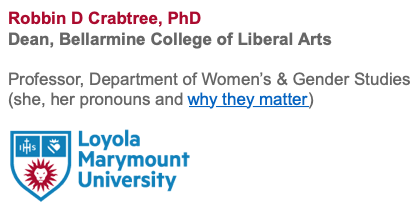 As the screenshots below indicate, not just one Theological Studies professor but your administration itself reflects and reinforces gender ideology. For example, Dean Robbin Crabtree of the Bellarmine College of Liberal Arts, whose service to Planned Parenthood has been decried by alumni and under whose leadership “commitment to Roman Catholicism” was deleted, promotes the practice of declaring preferred pronouns. Moreover, your administration’s “Chosen Name Project” presupposes and reinforces the claims of gender ideology decried as “ideological colonization” by Pope Francis. That the “Chosen Name Project” includes a video shot inside Sacred Heart Chapel in front of the crucified Christ is particularly inappropriate.