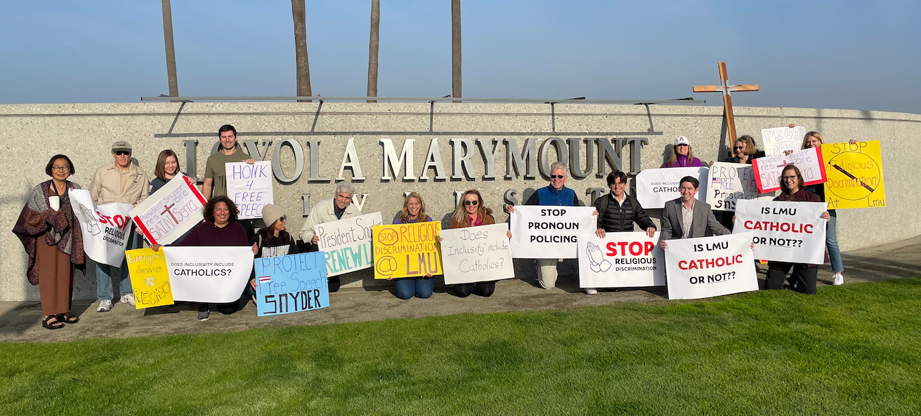 Please feel free to make and bring signs to protest President Snyder. Here are some ideas. “President Snyder, Renew LMU” “Snyder Restore St Serra” “Snyder Stop Religious Discrimination at LMU” “Snyder Restore Mission in BCLA” “Snyder Stop Pronoun Policing” “Snyder Needs to Stop Student Cyberbullying” “Tim, does ‘inclusivity’ include Catholics?”